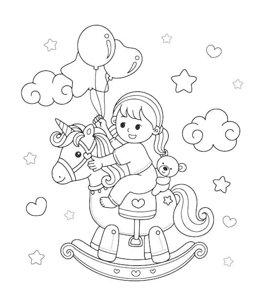 Coloring description : Download Printable Cute Girl and Rocking Horse Coloring Page