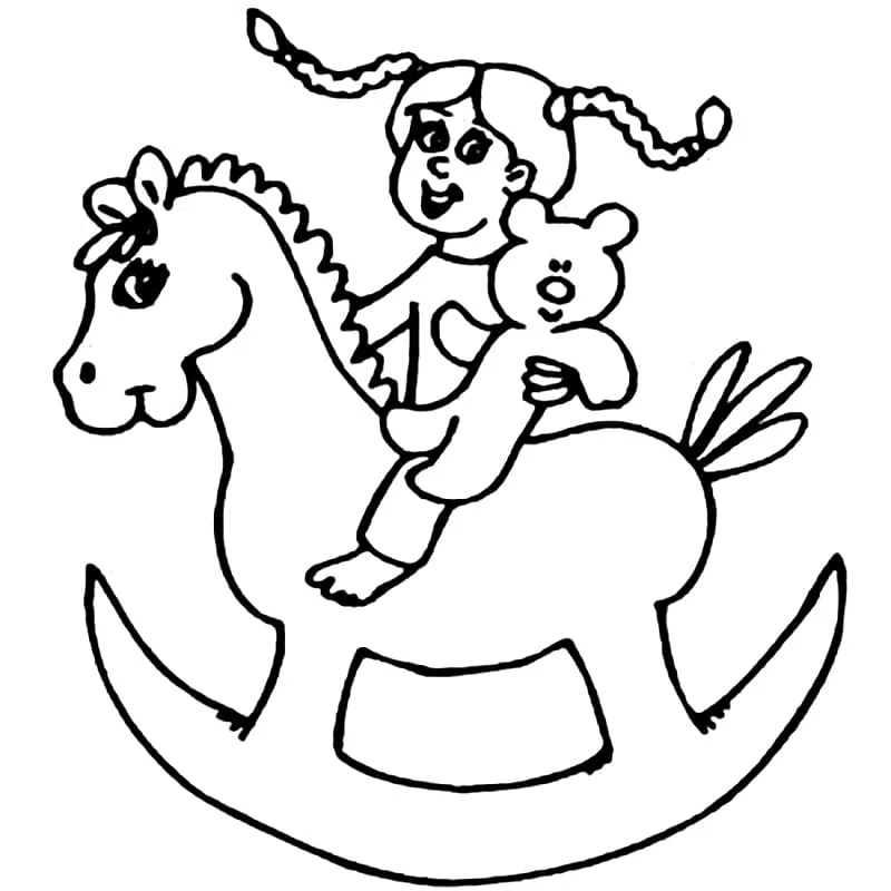 Coloring description : Download Printable Little Girl on Rocking Horse Coloring Page