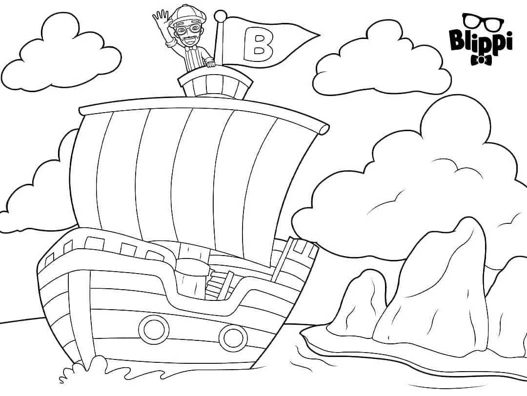 Coloring description : Download Printable Blippi on Pirate Ship Coloring Page