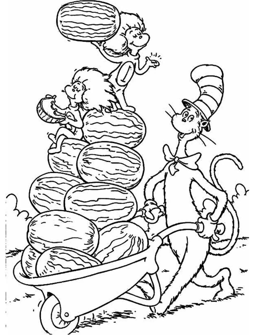 Coloring description : Download Printable Cat And Watermelons Coloring Page