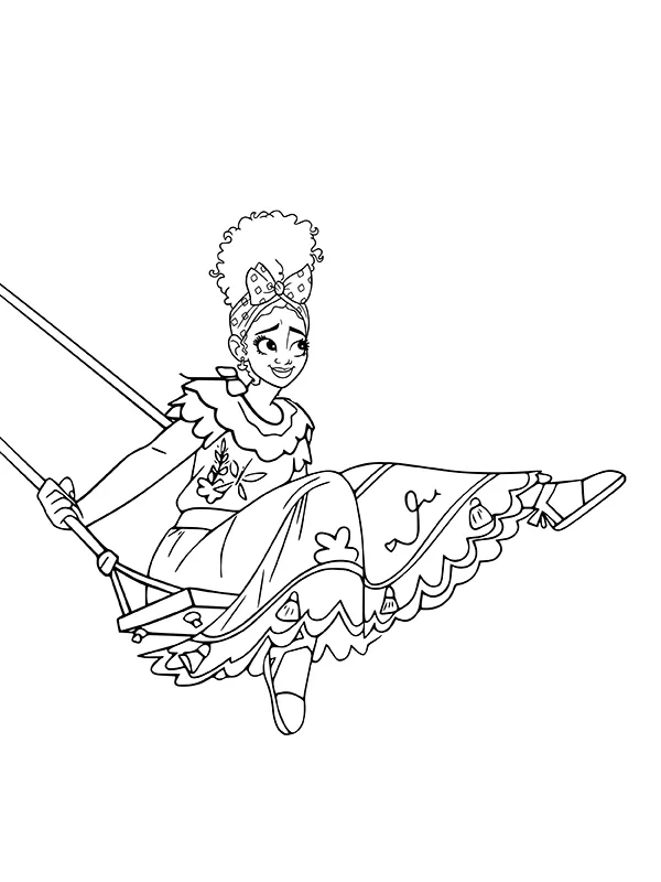 Coloring description : Download Printable Encanto Dolores Swinging Coloring Page