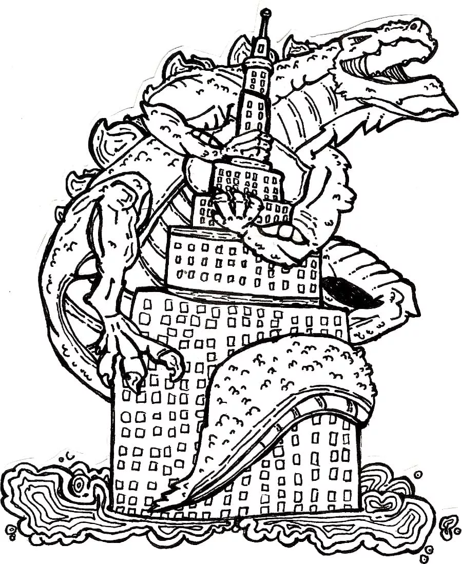 Coloring description : Download Printable Godzilla on Roof coloring page Coloring Page