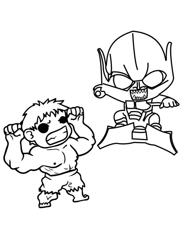 Coloring description : Download Printable Chibi Green Goblin with Hulk Coloring Page