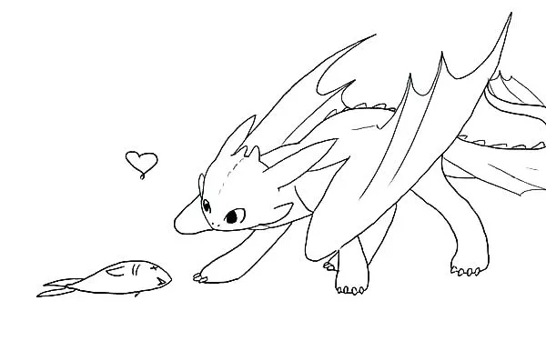 Coloring description : Download Printable Toothless And Fish Coloring Page