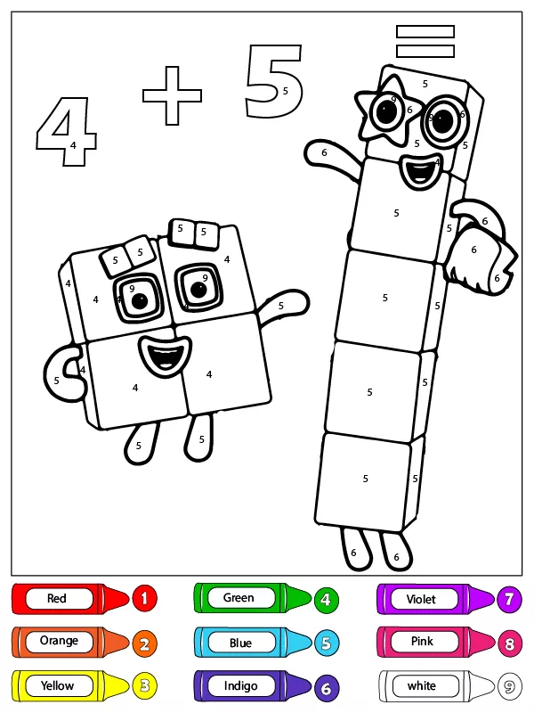 Coloring description : Download Printable Four and Five Numberblocks Color by Number Coloring Page