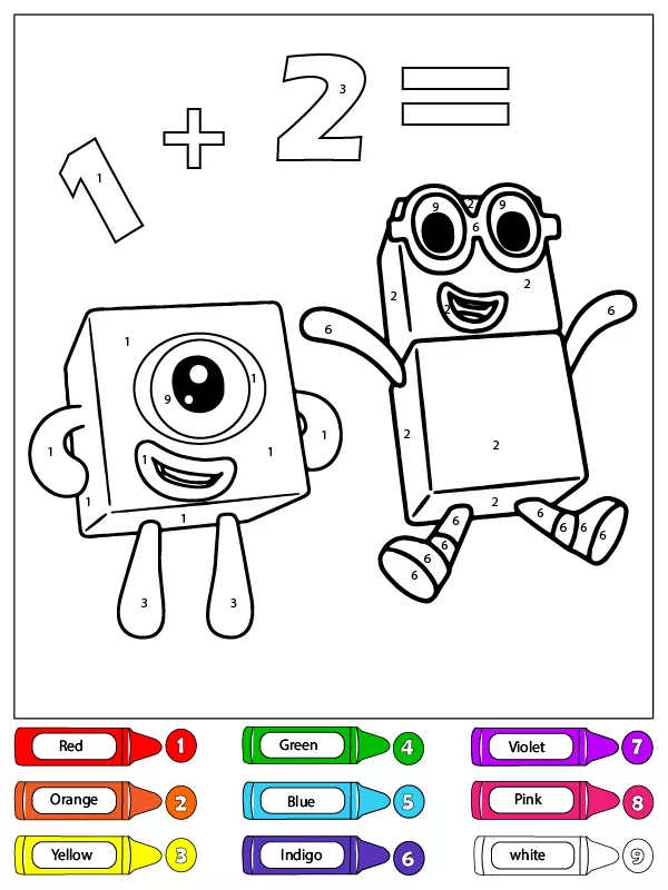 Coloring description : Download Printable One and Two Numberblocks Color by Number Coloring Page