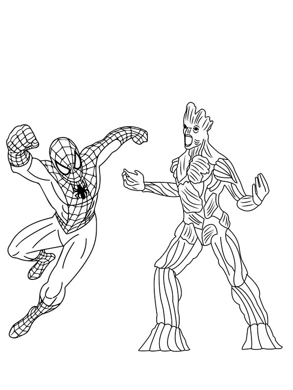 Coloring description : Download Printable Old Groot with Spider-Man Coloring Page