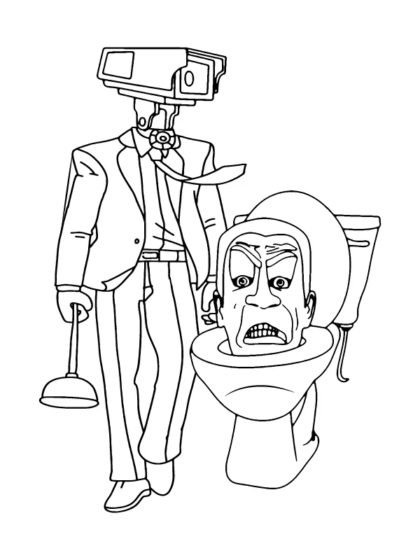 Coloring description : Download Printable Skibidi Toilet and Cameraman Coloring Page