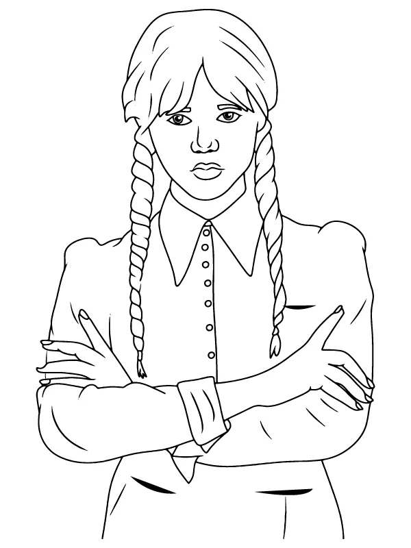 Coloring description : Download Printable Wednesday Arms Crossed Coloring Page