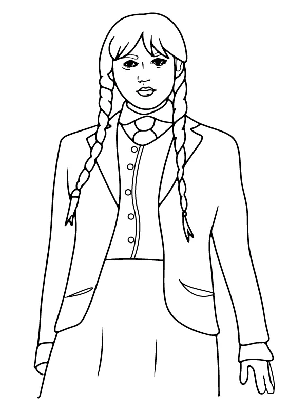 Coloring description : Download Printable Wednesday Standing with Serious Face Coloring Page