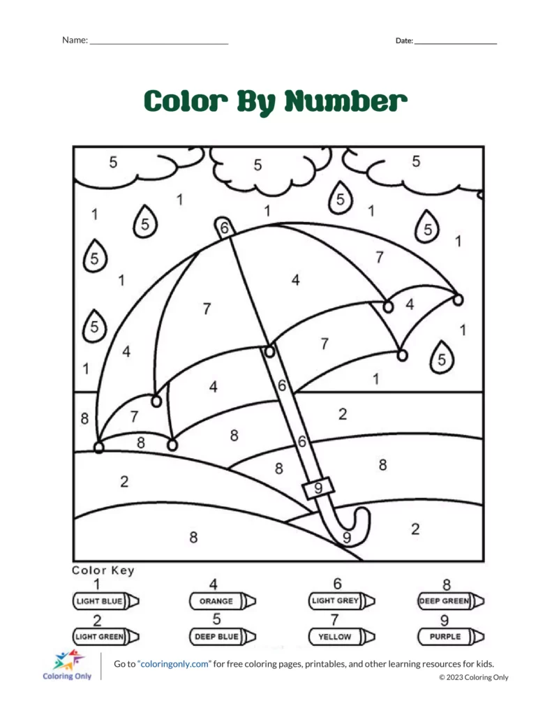 Coloring description : Download Printable Umbrella Color by Number Coloring Page