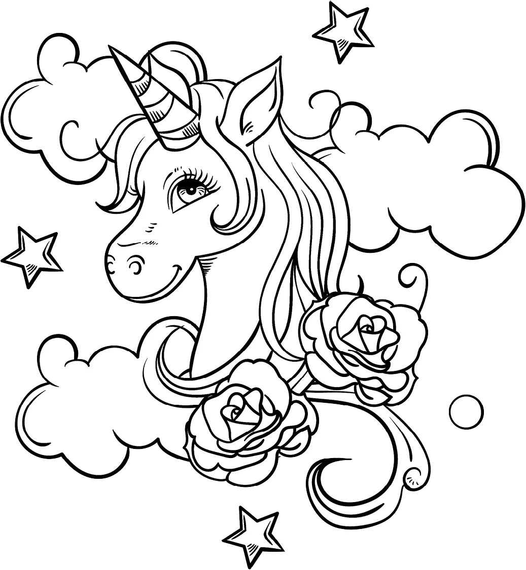 Coloring description : Download Printable Unicorn Head And Roses Coloring Page