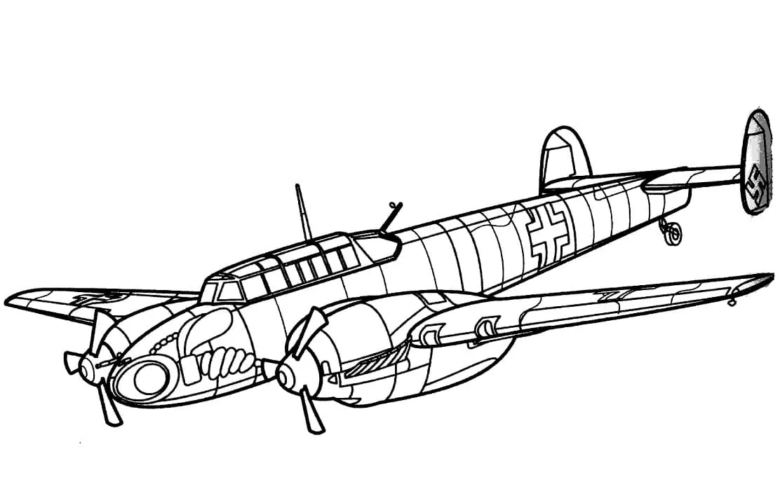 Coloring description : Download Printable Messerschmitt Bf 110 Aircraft Coloring Page
