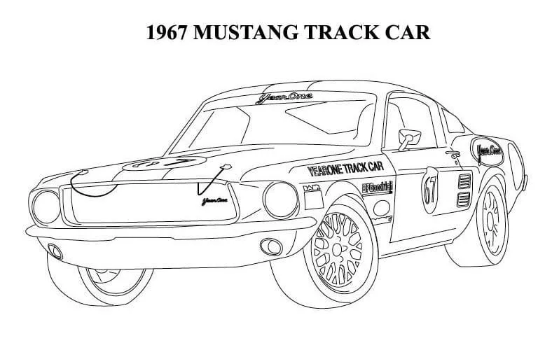 Coloring description : Download Printable 1967 Mustang Track Car Coloring Page