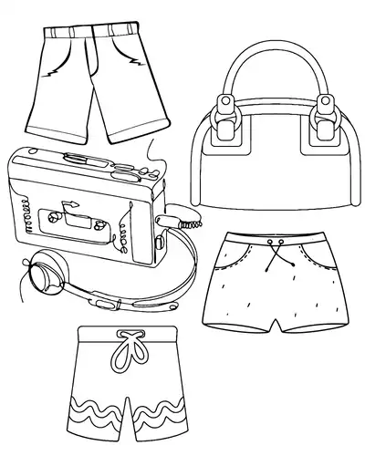 Coloring description : Download Printable y2k-bags-audio-cassette-headset-and-trunks-coloring-page Coloring Page
